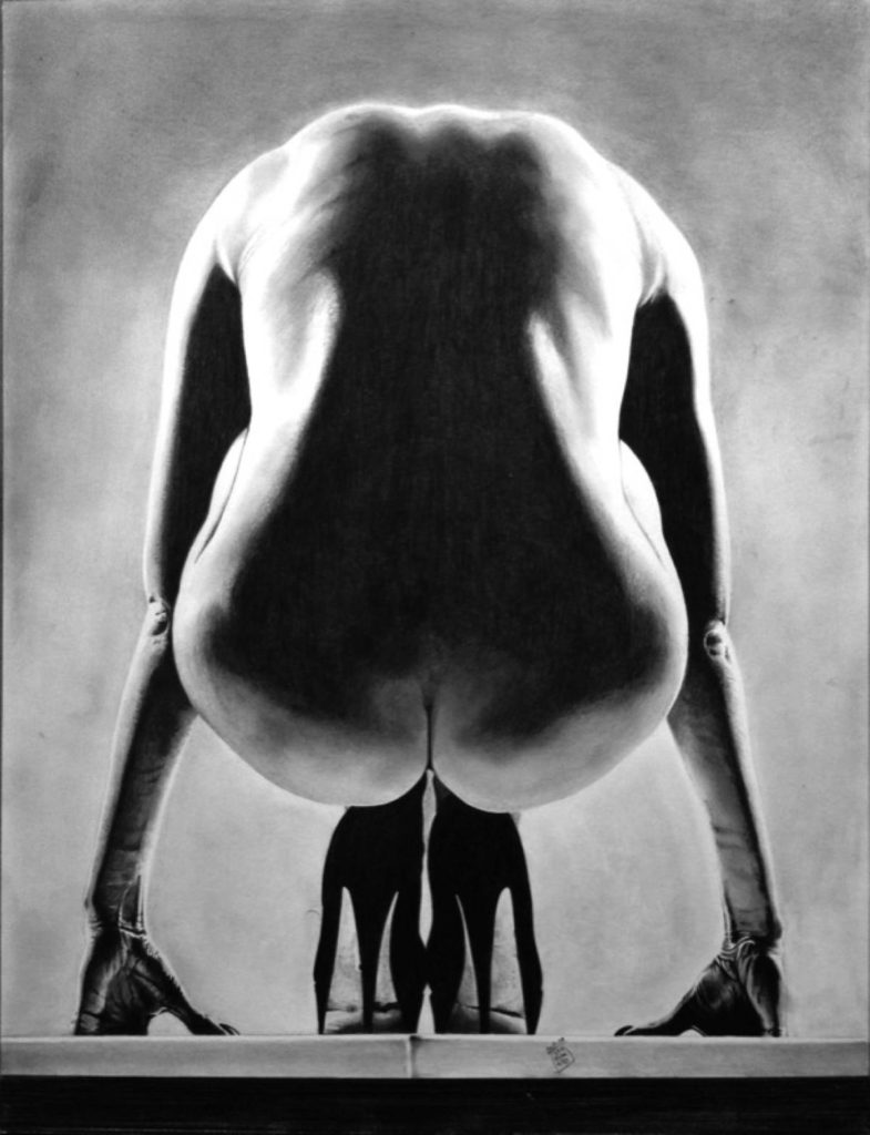 Questa immagine, ha generato in me un’ eccezionale desiderio di ritrarre altri soggetti di nudo. Originariamente scattata con le sapienti tecniche dei fotografi di Buonaluce Photography come tributo al Maestro Thorsten Jankowski, ….staremo a vedere cosa mi verrà in mente la prossima volta. Le linee curve e intriganti che il corpo femminile offrono, sono una vera e propria attrazione. La matita scorre danzando sul foglio di carta creando pian piano l’emozione che arriva al suo apice alla fine del disegno.
